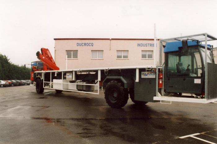 Client : BOUYGUESLocalisation : opérationnel aux Pays-Bas et au MarocAnnée de réalisation : 2005Descriptif : Transport de ferraillages dans tunnel : capacité de charge 15 tonnes; longueur de 18 mètres.Caractéristiques : Véhicule équipé d'une grue hydraulique compacte et de 4 roues directionnelles.